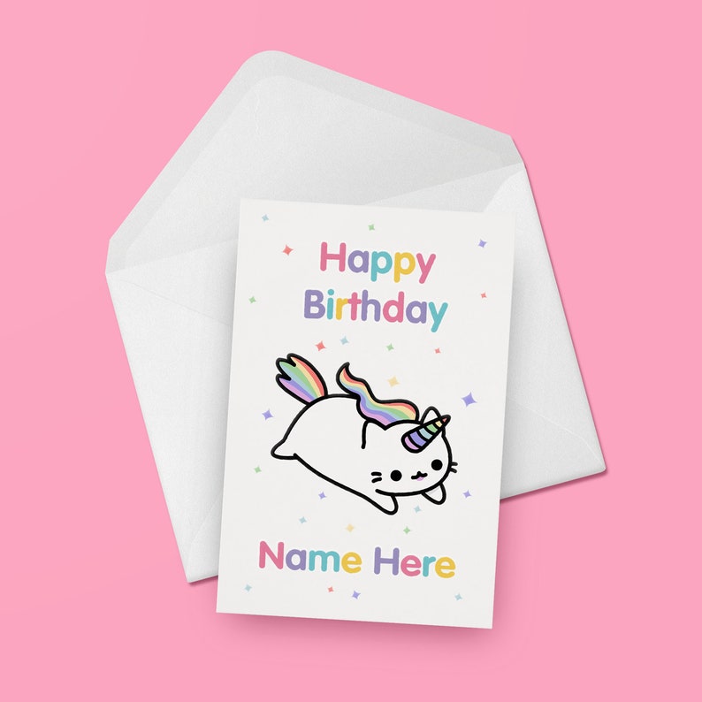 Personalised Caticorn Greeting Card Cat Unicorn Custom Etsy